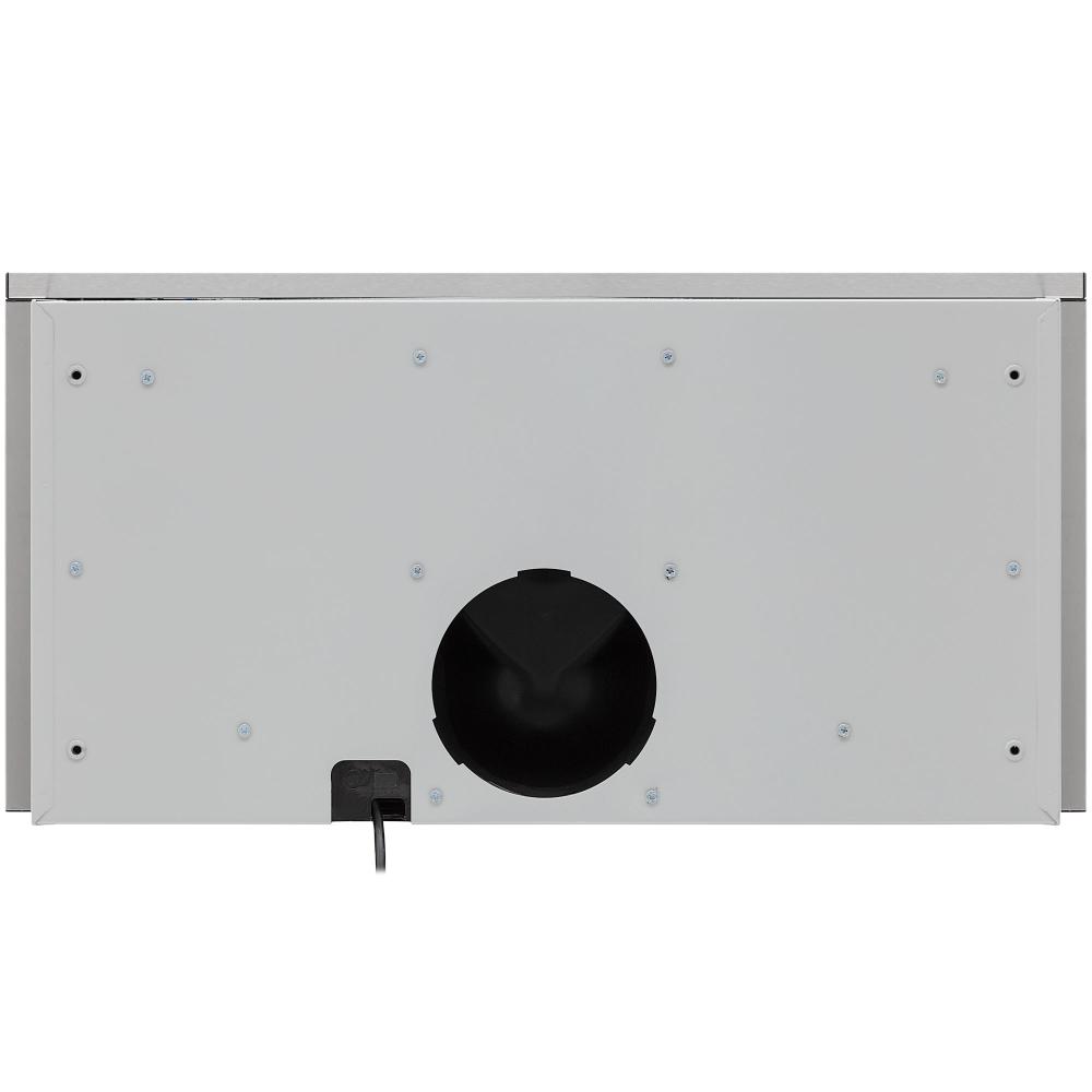 Вытяжка работает в режимах отвода и циркуляции, поэтому загрязнения удаляются из комнаты и перенаправляются в воздуховод, при этом можно очистить воздух и использовать повторно за счет возвращения его в помещение. Количество скоростей в этой модели: 3 шт. При этом максимальная производительность составляет 800 куб.м./ч. Уровень шума при полной загруженности — 53 дБ.
