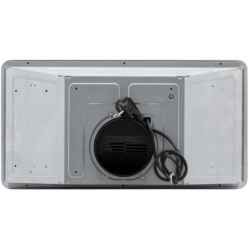 Вытяжка работает в режимах отвода и циркуляции, поэтому загрязнения удаляются из комнаты и перенаправляются в воздуховод, при этом можно очистить воздух и использовать повторно за счет возвращения его в помещение. Количество скоростей в этой модели: 3 шт. При этом максимальная производительность составляет 700 куб.м./ч. Уровень шума при полной загруженности — 50 дБ.