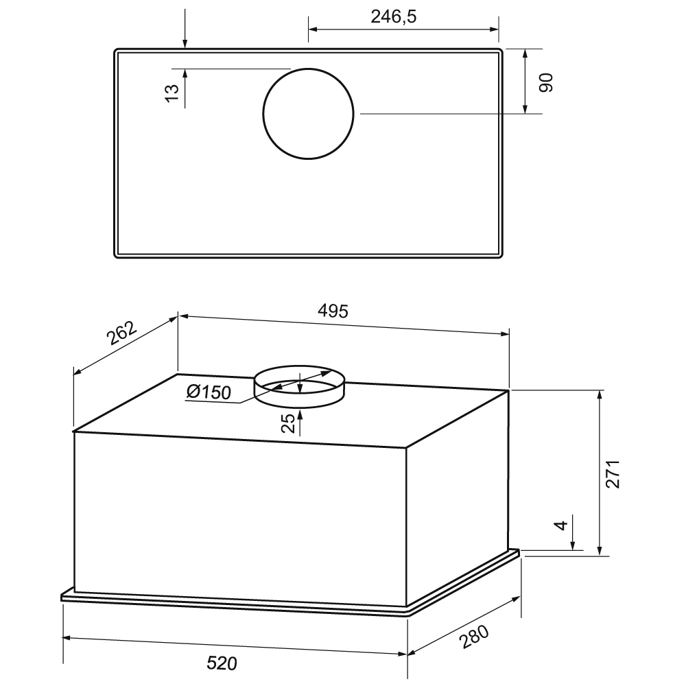 У многих встраиваемых моделей глубина может регулироваться, а рабочая всасывающая поверхность — увеличиваться благодаря выдвижному козырьку, но габариты корпуса такой вытяжки должны соответствовать размерам подвесного шкафа. Выбирать основные размеры вытяжки с соблюдением всех требований эффективности и безопасности работы следует также не в ущерб общему дизайну помещения.
