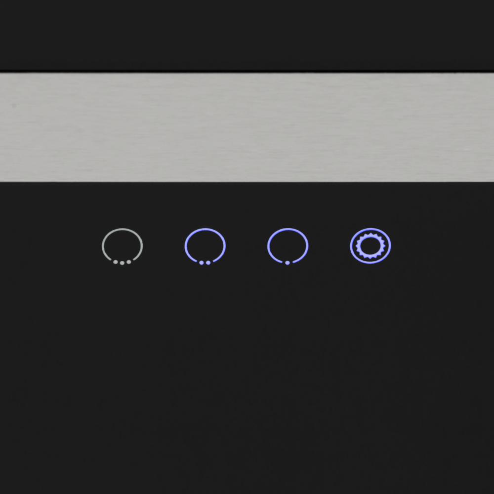 Встраиваемые и простые настенные модели, как правило, оснащаются боковой панелью управления, состоящей из нескольких кнопок. Их количество зависит от числа скоростей, наличия интенсивного режима и встроенного освещения. Боковое расположение панели управления делает вытяжку еще более незаметной.