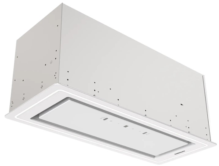 Вытяжка, встраиваемая в потолок, часто устанавливается над кухонным островом в просторной кухне и отличается достаточно высокой мощностью: она может работать как в режиме рециркуляции, так и в режиме отвода, так как воздуховод также скрыт в потолке. Вытяжки могут монтироваться в подвесной потолок либо устанавливаться в специальные многоярусные конструкции из гипсокартона непосредственно во время ремонта кухни. Для управления ими используется пульт ДУ.
