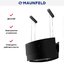В моделях, которые крепятся к стене, включая наклонные и встраиваемые в подвесной шкаф, обычно используются две лампы, расположенные слева и справа. Такого освещения достаточно, чтобы пользователь чувствовал себя комфортно во время подготовки продуктов и приготовления пищи. Выбирая модель, необходимо обратить внимание также на угол наклона ламп, и уточнить, не перекрывается ли световой поток рядом стоящей мебелью, техникой, элементами самой вытяжки.