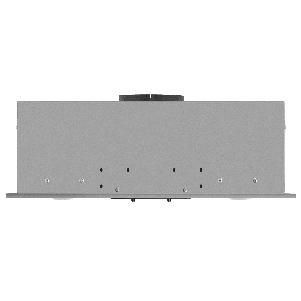 Воздух всасывается по периметру вытяжки через узкие щели. Он собирается в потоки, которые направляются прямо к фильтрам внутри, не рассеивается на кухне. Благодаря этой технологией вытяжку можно сделать компактнее и энергоэффективнее.