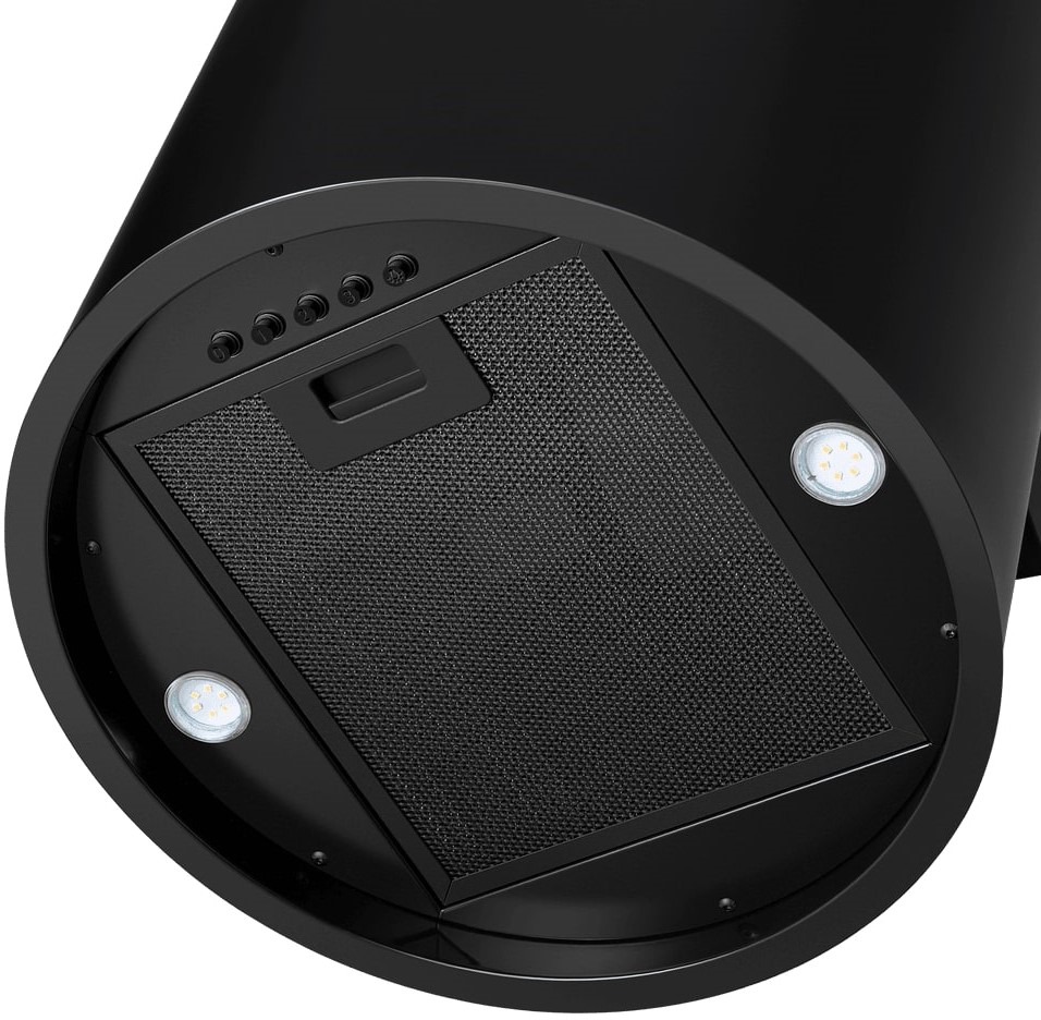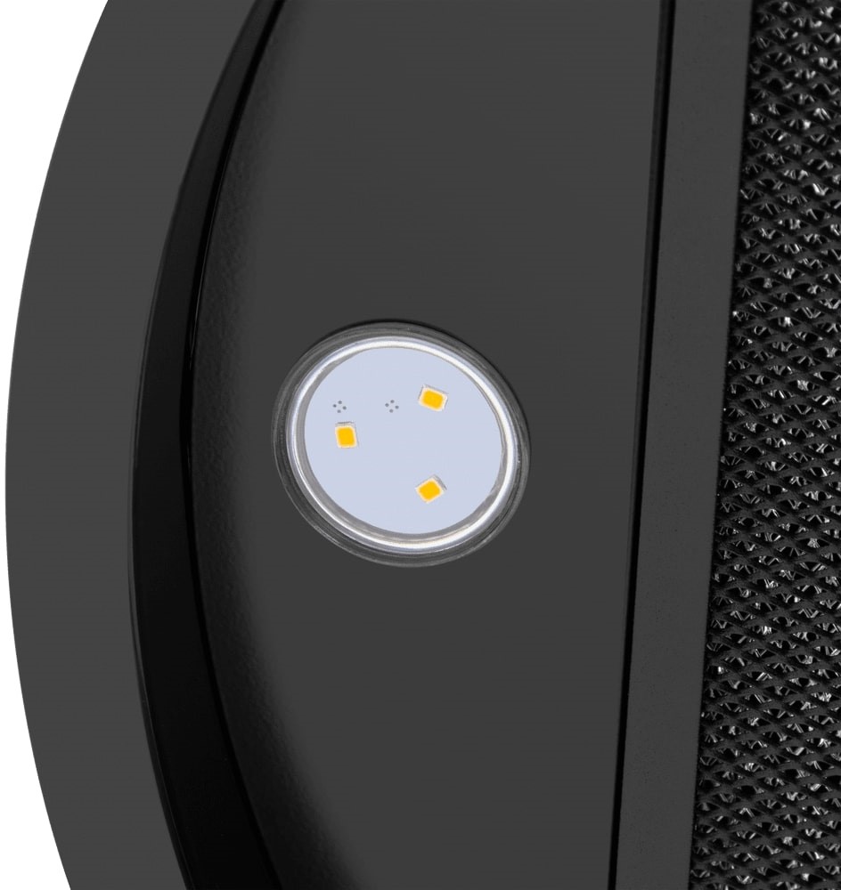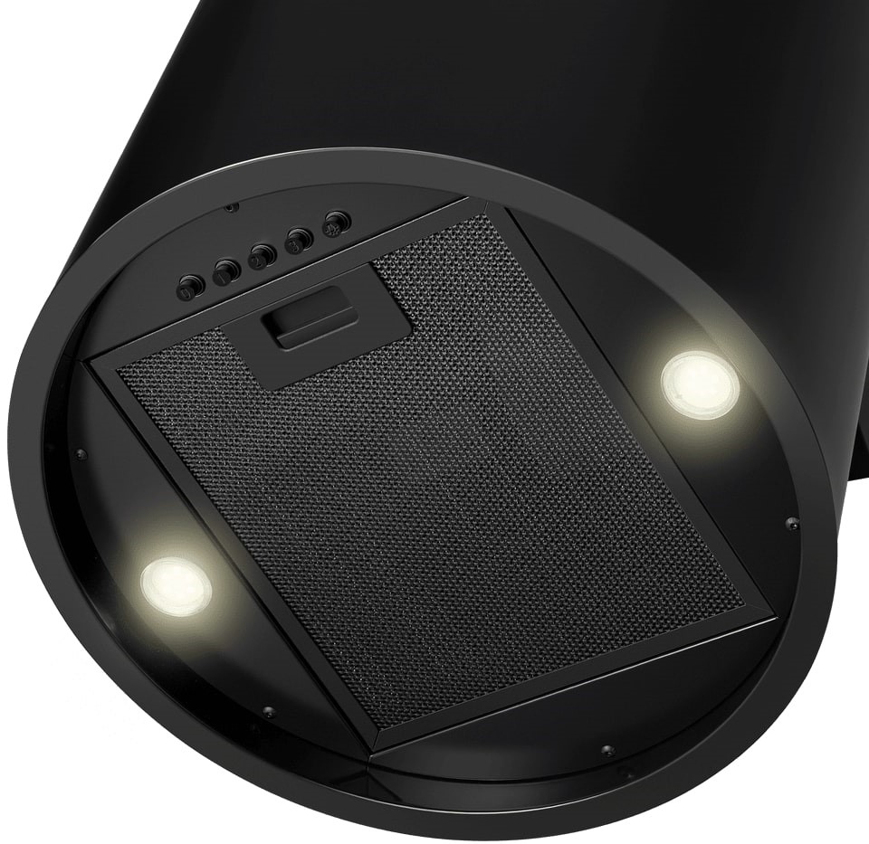 Крепление вытяжки к стене — стандартное для многих моделей, ими удобно управлять, так как кнопки находятся на расстоянии вытянутой руки. Обратите внимание на цветовые сочетания модели Maunfeld DRUM Wall 35 black, чтобы органично вписать ее в свою квартиру. Оттенок корпуса: черный. Благодаря лампочкам, которые расположены на нем, можно освещать плиту и столешницу рядом, чтобы готовить было еще проще и приятнее.