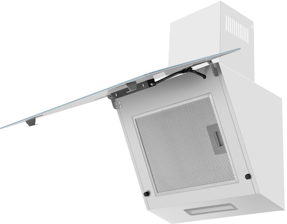 Данная вытяжка крепится на стену и имеет наклонную фронтальную панель, что придает изюминку дизайну и позволяет сохранить свободное рабочее пространство внизу. Обратите внимание на цветовые сочетания модели Maunfeld Elf 60 Glass White, чтобы органично вписать ее в свою квартиру. Оттенок корпуса: белый. Благодаря лампочкам, которые расположены на нем, можно освещать плиту и столешницу рядом, чтобы готовить было еще проще и приятнее.