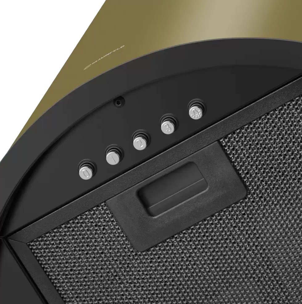 Наиболее распространенным элементом управления являются кнопки — ими оснащаются устройства с механическим управлением. Кнопки можно увидеть у вытяжек всех типов, от простых встраиваемых до дизайнерских подвесных, островных или наклонных. Количество кнопок зависит от набора функций: в простейшем случае достаточно всего трех кнопок — двух для переключения скоростей и одной для включения освещения. Как правило, они имеют круглую форму, однако производители предлагают устройства с квадратными и даже треугольными кнопками. В больших купольных вытяжках кнопки могут изготавливаться из меди, бронзы или латуни, а моделях современного дизайна — оснащаться подсветкой.