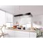 Подвесная конструкция — разновидность островной, она также крепится к потолку над изолированной варочной поверхностью. Ее особенность — тросы, на которых держится основание. Благодаря этому вытяжка кажется невесомой, зачастую напоминает светильник и отлично вписывается в интерьер.