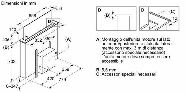 Вытяжки, встраиваемые в столешницу — эффективная инновация, которая подойдет для установки в кухне любой площади. Такие вытяжки размещаются за варочной поверхностью или рядом с ней. В отключенном состоянии всасывающая панель находится под столешницей, но после включения одной или нескольких конфорок она автоматически выдвигается при помощи специального лифтового механизма. Загрязненный воздух улавливается, не успевая распространиться по помещению. Когда вытяжка убрана, на виду остается только сенсорная панель управления. Недостатком подобных моделей является только сравнительно высокая цена.