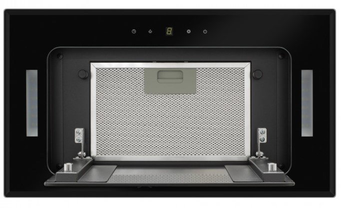 Вытяжки, встраиваемые в столешницу — эффективная инновация, которая подойдет для установки в кухне любой площади. Такие вытяжки размещаются за варочной поверхностью или рядом с ней. В отключенном состоянии всасывающая панель находится под столешницей, но после включения одной или нескольких конфорок она автоматически выдвигается при помощи специального лифтового механизма. Загрязненный воздух улавливается, не успевая распространиться по помещению. Когда вытяжка убрана, на виду остается только сенсорная панель управления. Недостатком подобных моделей является только сравнительно высокая цена.