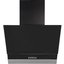 Стильная настенная вытяжка с наклонной фронтальной панелью из черного стекла. В комплекте есть жироулавливающий фильтр, дополнительно можно приобрести угольный. Режимы работы прибора — отвод и циркуляция воздуха.