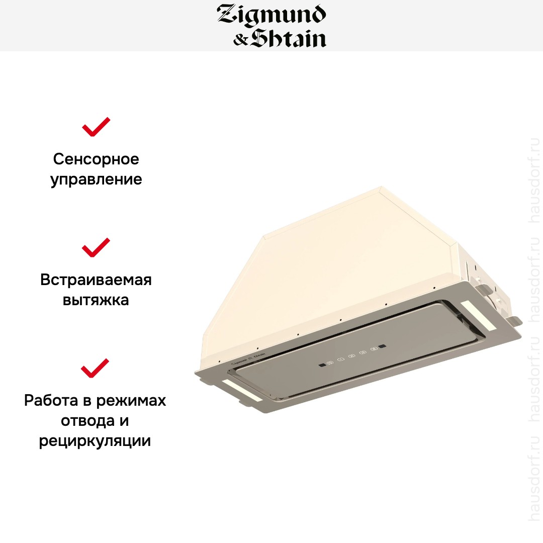 Встраиваемая вытяжка — выбор тех, кто хочет максимально задекорировать технику, или владельцев маленькой кухни. Тип встраивания: в шкаф. Обратите внимание на цветовые сочетания модели Zigmund Shtain K 014.7 X, чтобы органично вписать ее в свою квартиру. Оттенок корпуса: бежевый. Благодаря лампочкам, которые расположены на нем, можно освещать плиту и столешницу рядом, чтобы готовить было еще проще и приятнее.