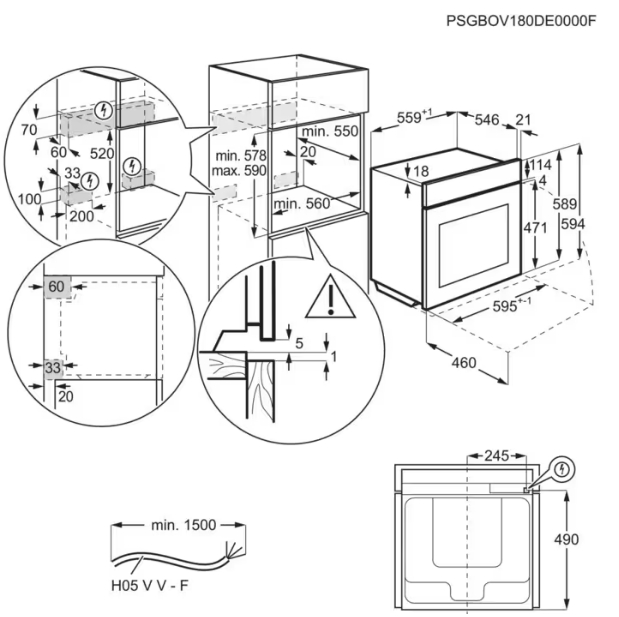 AEG NBB8S731AT - схема с размерами к духовому шкафу на разных языках на Hausdorf