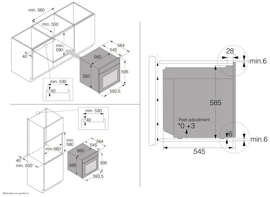 Asko OCS26BGH - схема встраивания с размерами к духовому шкафу на разных языках на Hausdorf