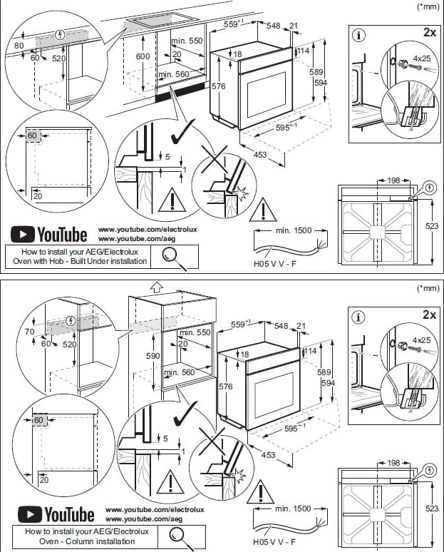 Electrolux EOE8P38X - схема встраивания к духовому шкафу на разных языках на Hausdorf