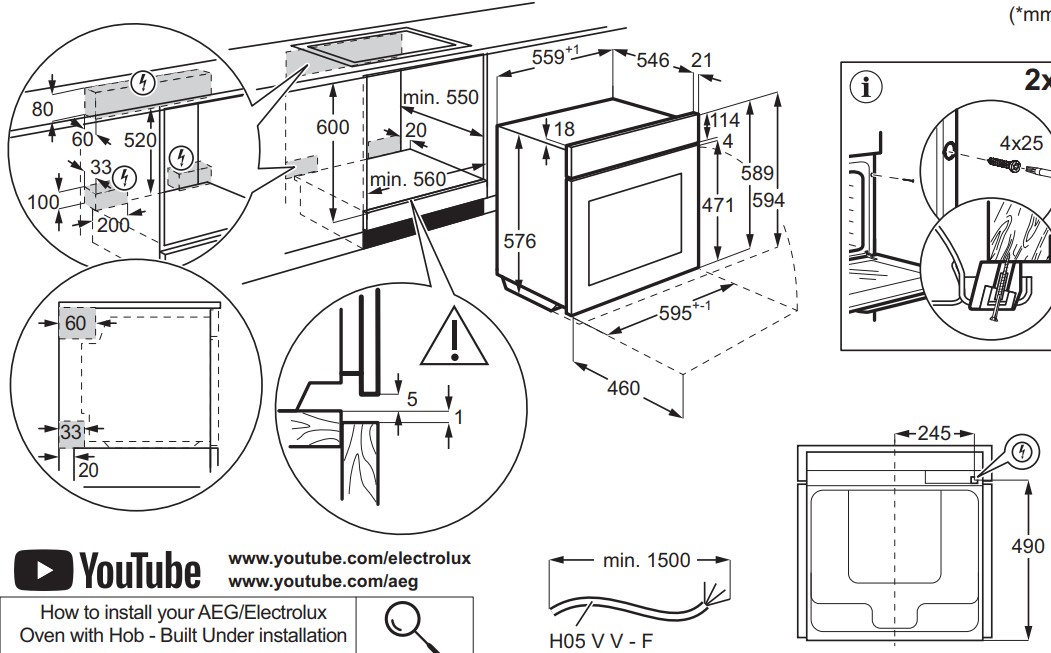 Electrolux KOBBS39WX - схема с размерами версия 2 к духовому шкафу на разных языках на Hausdorf