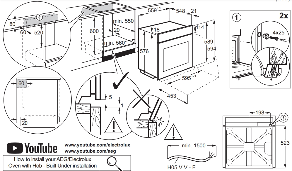 Electrolux LOE8P39X - схема с размерами версия 2 к духовому шкафу на разных языках на Hausdorf