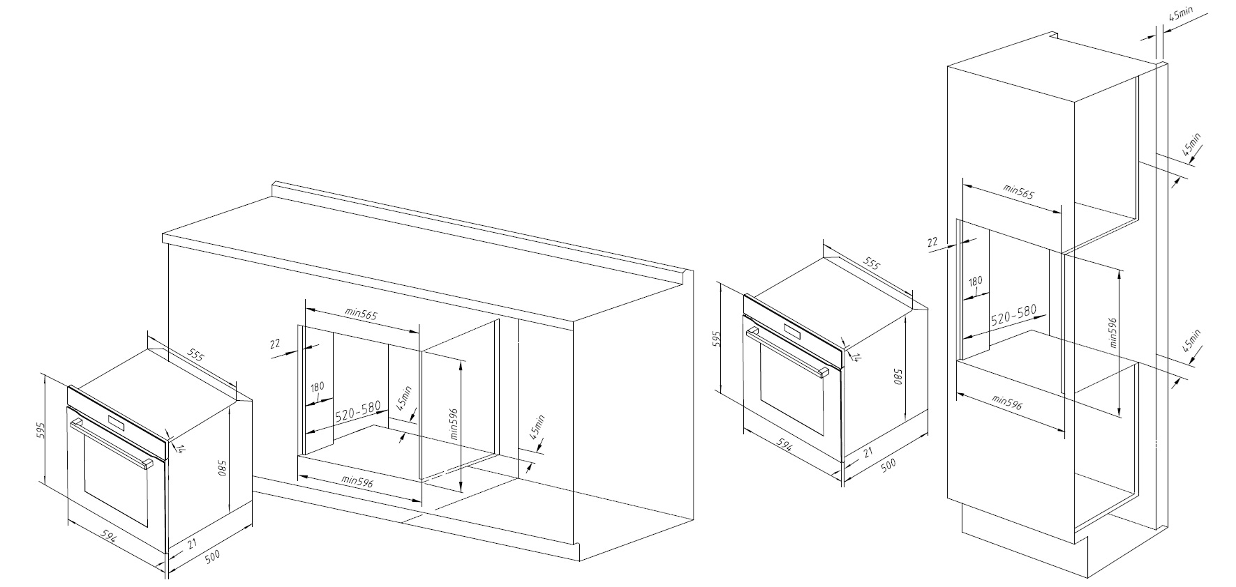 Graude BM 60.2 O - схема встраивания к духовому шкафу на разных языках на Hausdorf