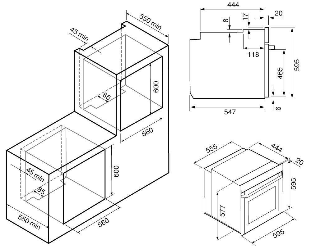 KRONA Motiv 60 BL - схема встраивания с размерами к духовому шкафу на разных языках на Hausdorf
