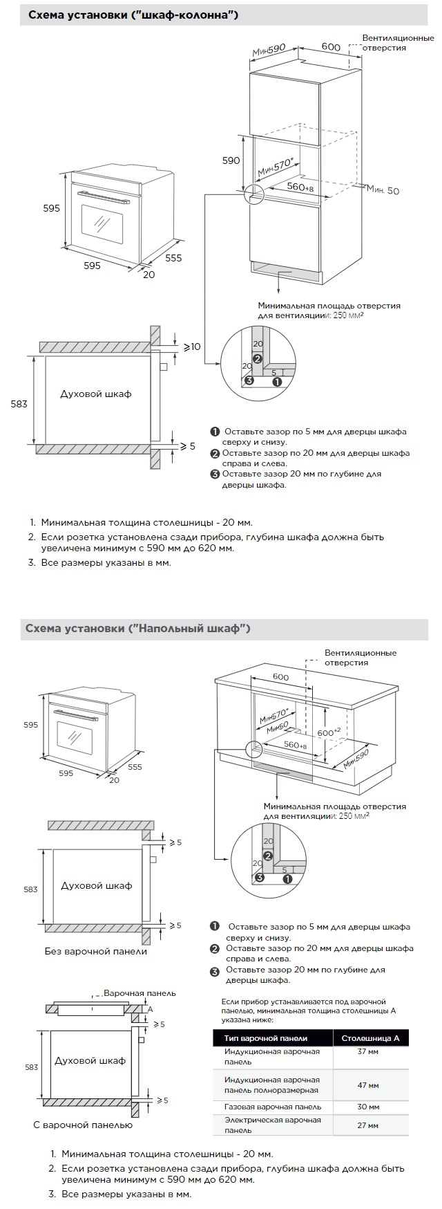 Midea MO69103GB - схема с размерами к духовому шкафу на разных языках на Hausdorf