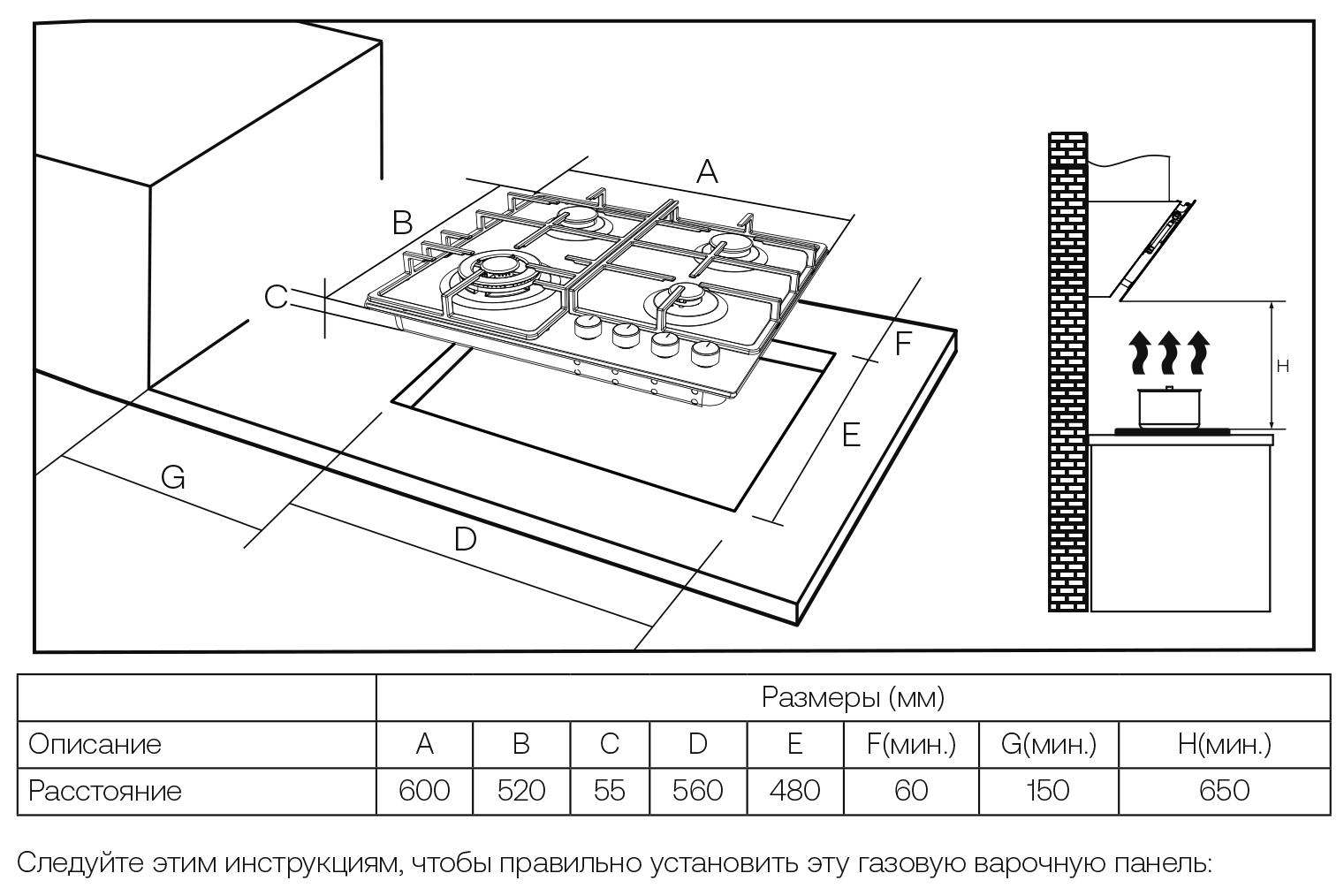 Haier HHQ-G64CTPB - схема встраивания к варочной панели на разных языках на Hausdorf