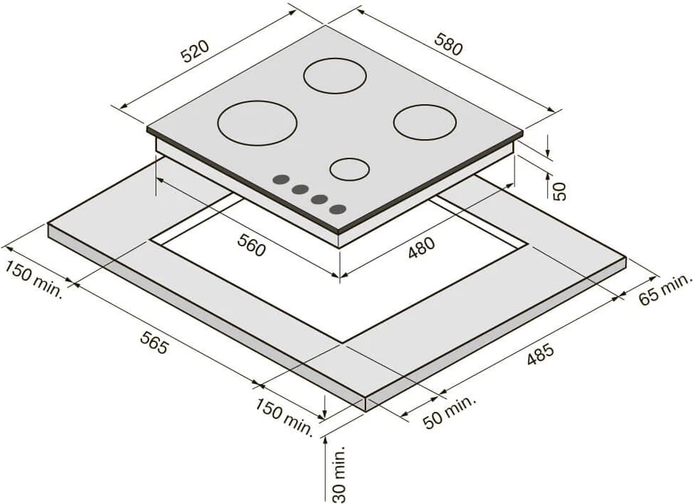 KRONA NEBEL 60 IX W - схема встраивания к варочной панели на разных языках на Hausdorf
