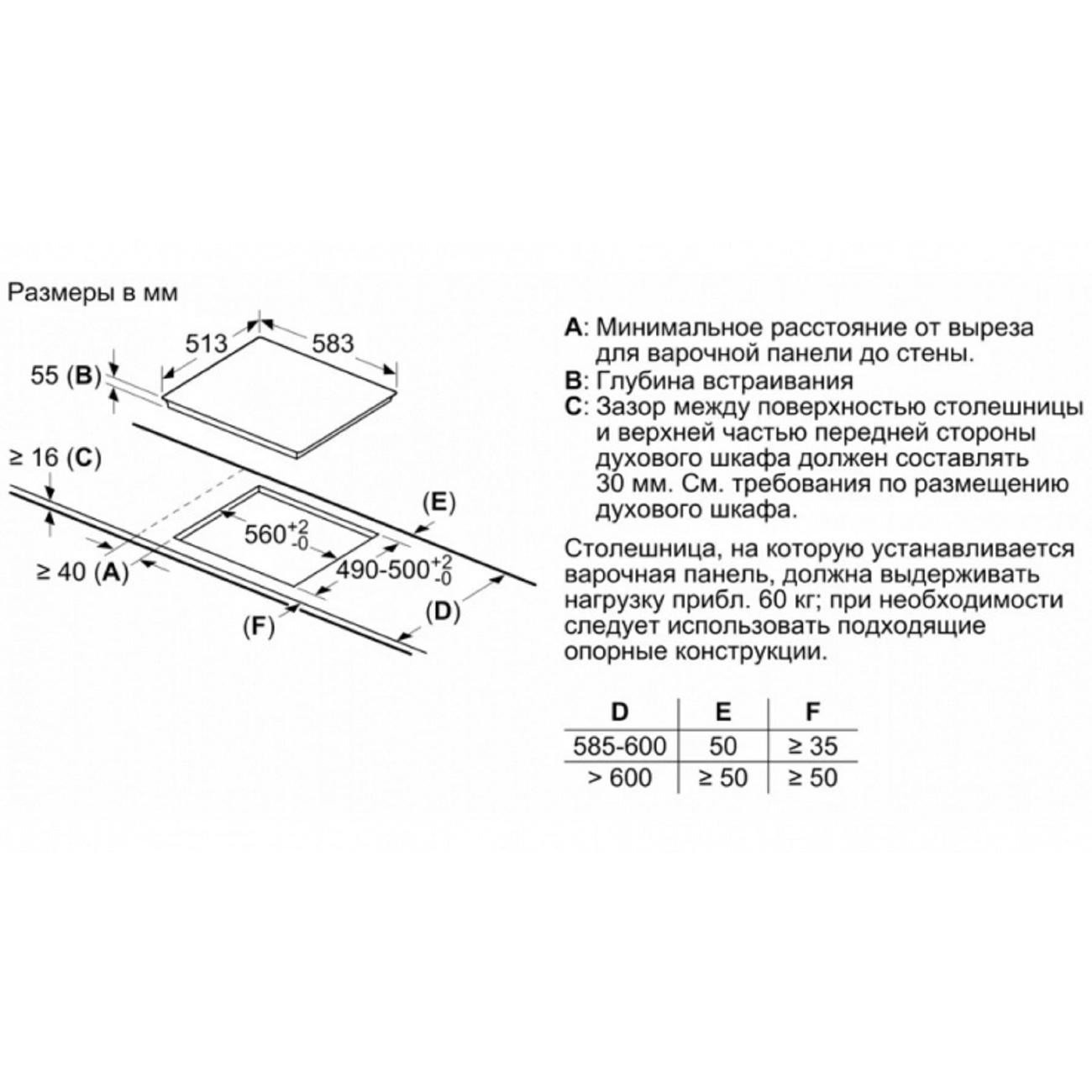 Bosch PIE645BB5E - схема с размерами версия 2 на разных языках