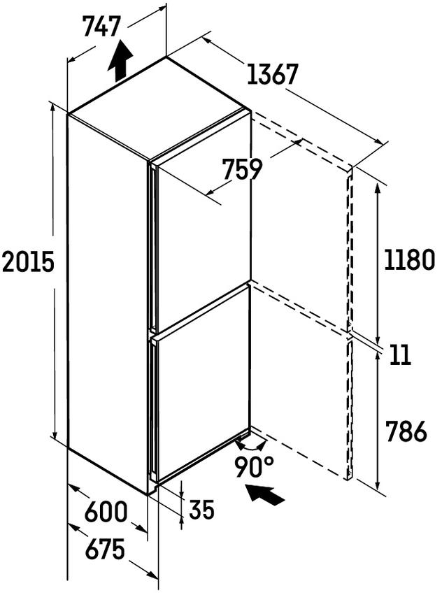 Liebherr CNbdd 7723 - схема с размерами к холодильнику на разных языках на Hausdorf