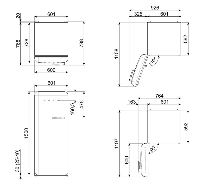 Smeg FAB28LOR6 - схема с размерами к холодильнику на разных языках на Hausdorf