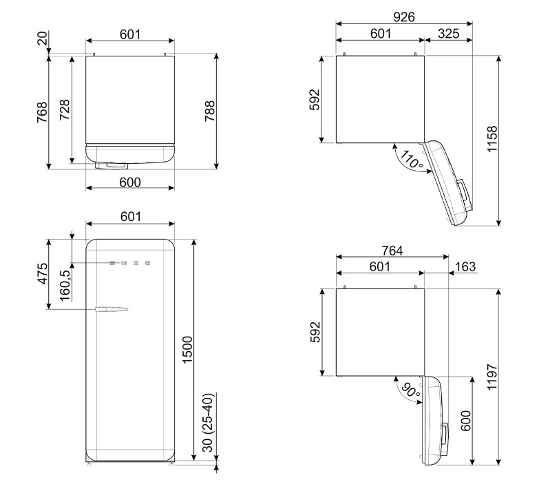 Smeg FAB28RCR6 - схема с размерами к холодильнику на разных языках на Hausdorf