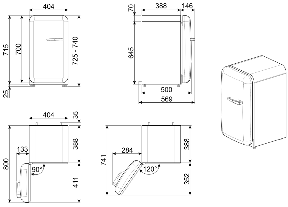 Smeg FAB5LWH6 - схема с размерами версия 2 к холодильнику на разных языках на Hausdorf