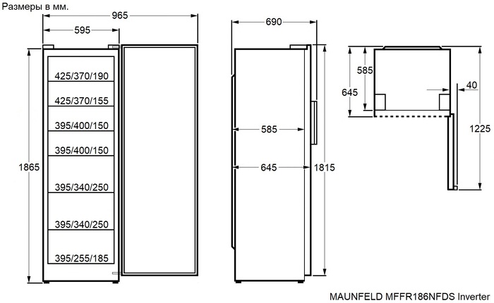 Maunfeld MFFR186NFBW Inverter - схема с размерами версия 2 к холодильнику на разных языках на Hausdorf