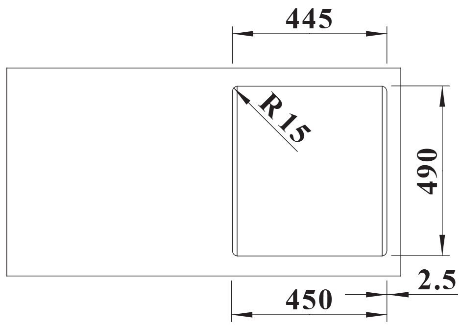 Blanco NAYA 45 темная скала - схема встраивания с размерами (2) к мойке на разных языках на Hausdorf