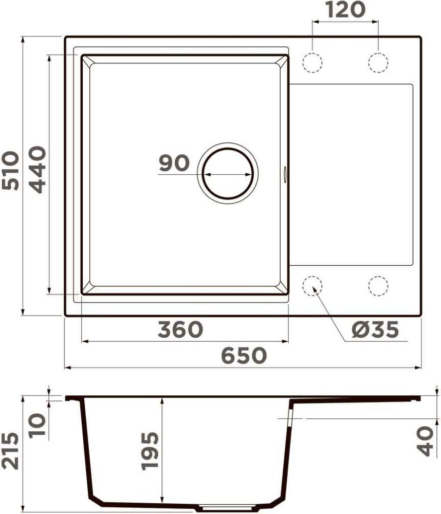 Omoikiri Daisen 65 WH - схема с размерами к мойке на разных языках на Hausdorf