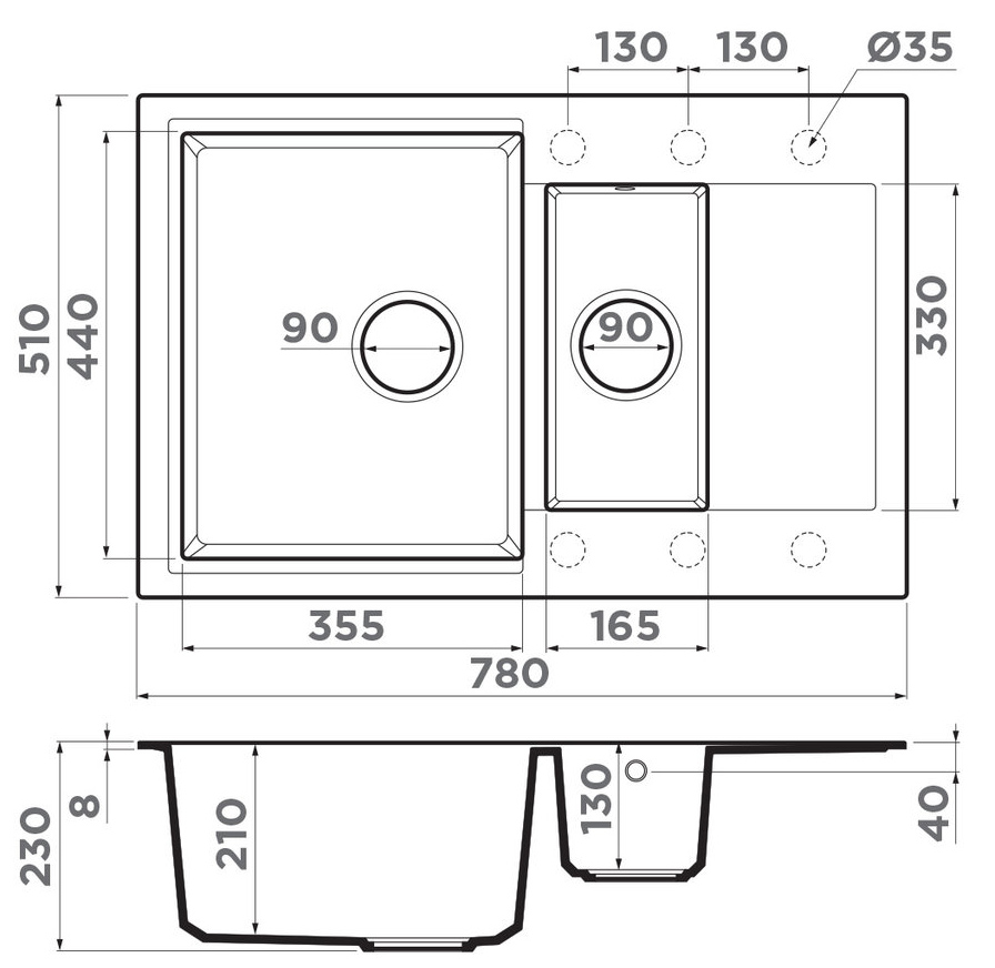 Сохранить файл: Схема с размерами к Omoikiri DAISEN 78-2T SA.JPG, 123.2 Кб