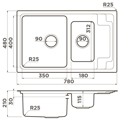 Сохранить файл: Схема с размерами к Omoikiri Mizu 78-2 IN.JPG, 64.63 Кб