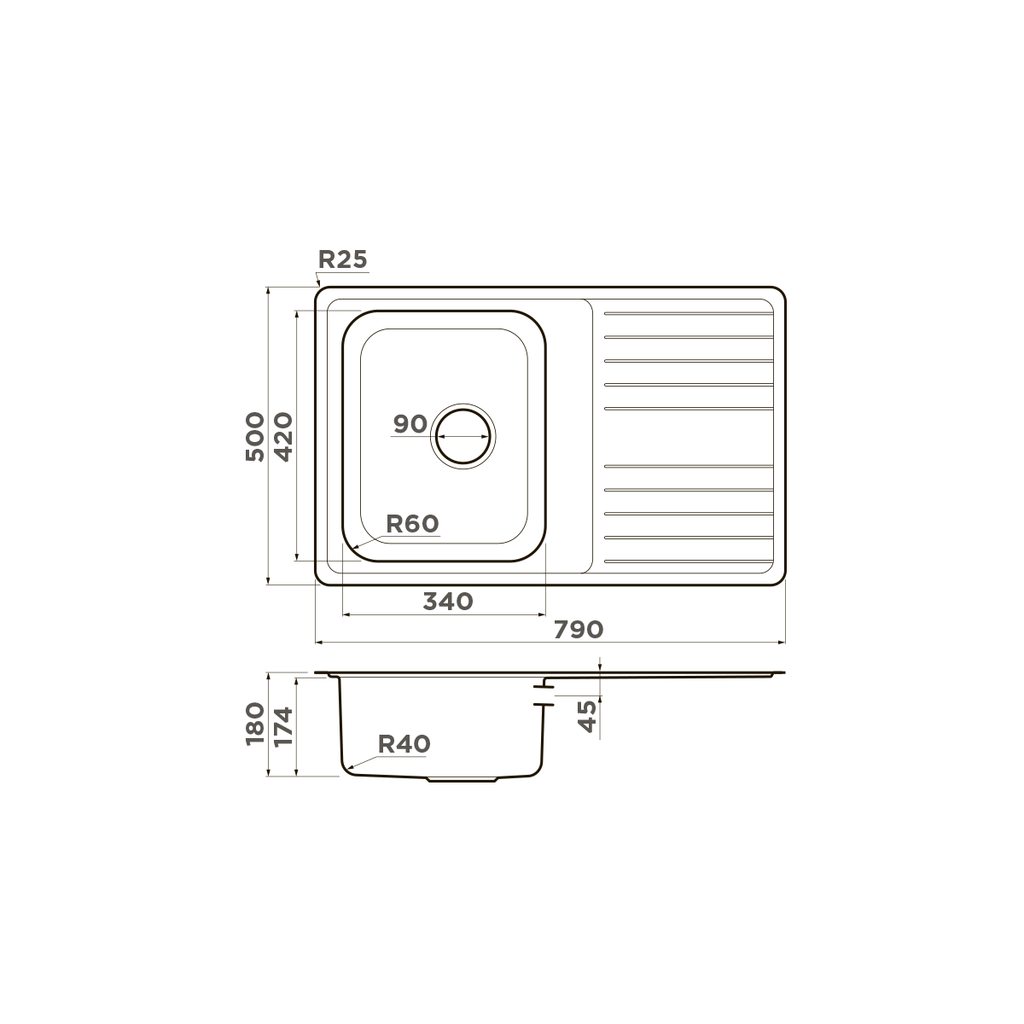 Omoikiri Sagami 79 IN - схема с размерами версия 2 к мойке на разных языках на Hausdorf