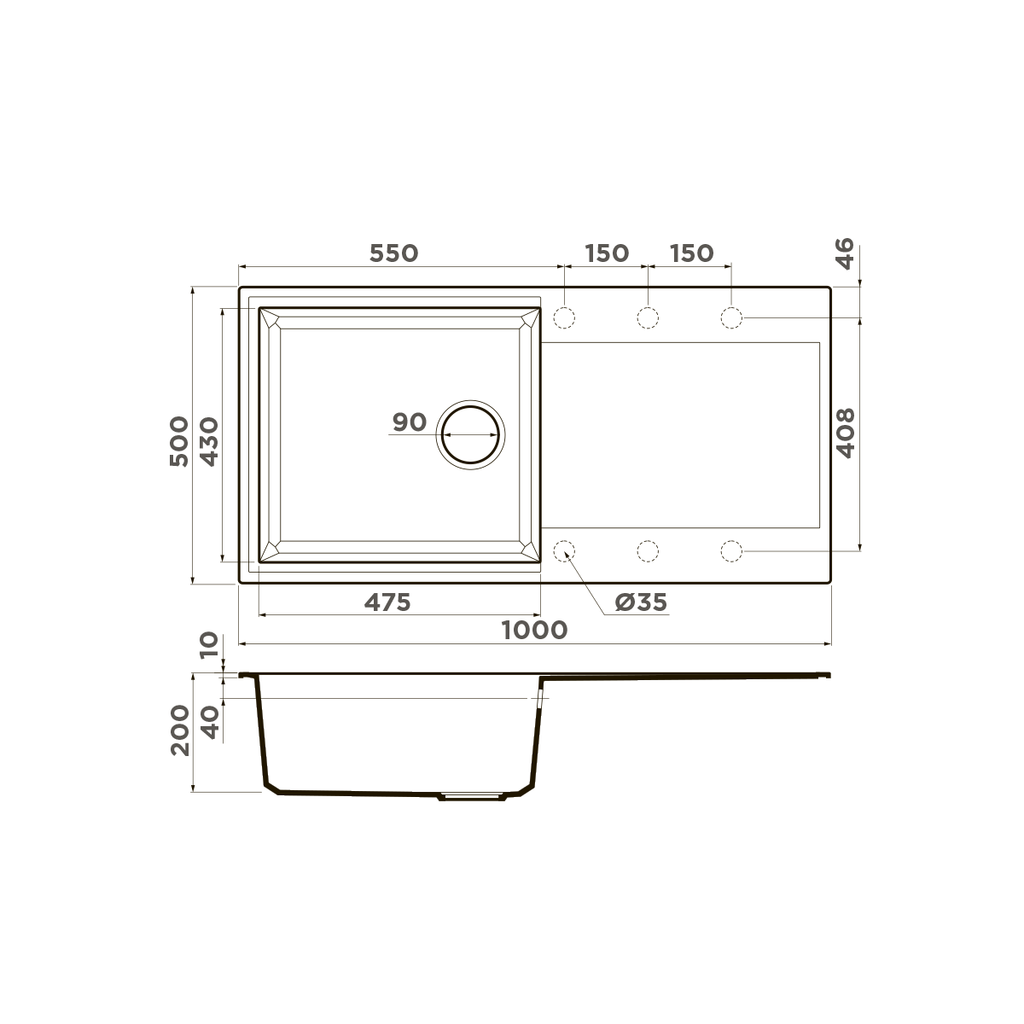 Сохранить файл: Схема с размерами к Omoikiri SAKAIME 100 BE.PNG, 69.83 Кб