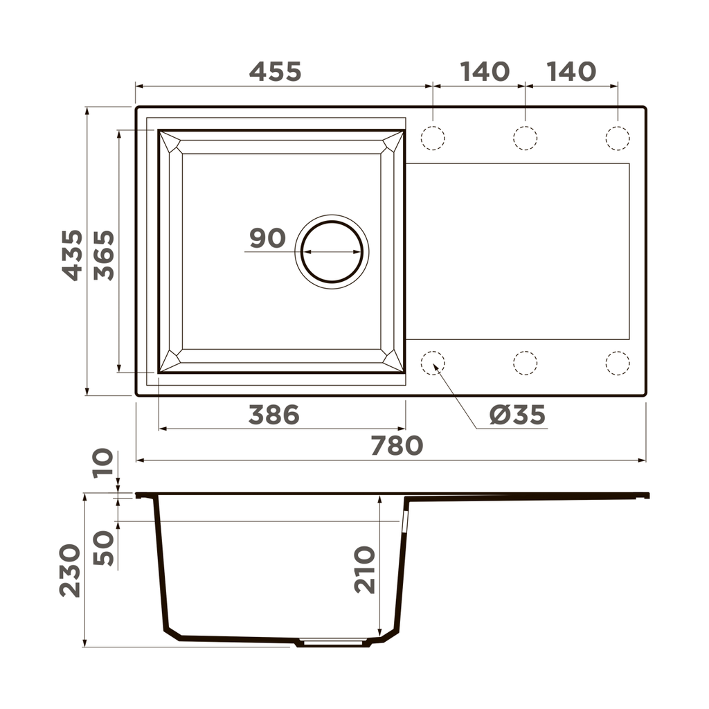 Сохранить файл: Схема с размерами к Omoikiri SAKAIME 78 DC.PNG, 134.84 Кб