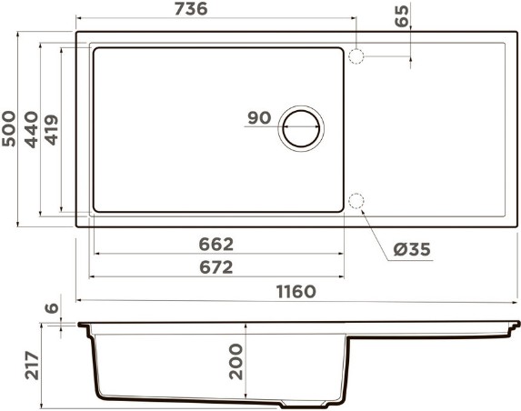 Сохранить файл: Схема с размерами к Omoikiri SINTESI 116 WG.JPG, 34.61 Кб