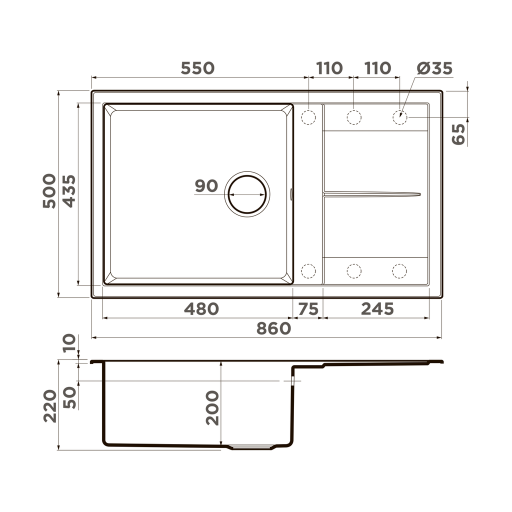 Сохранить файл: Схема с размерами к Omoikiri Sumi 86-CH.PNG, 129.6 Кб