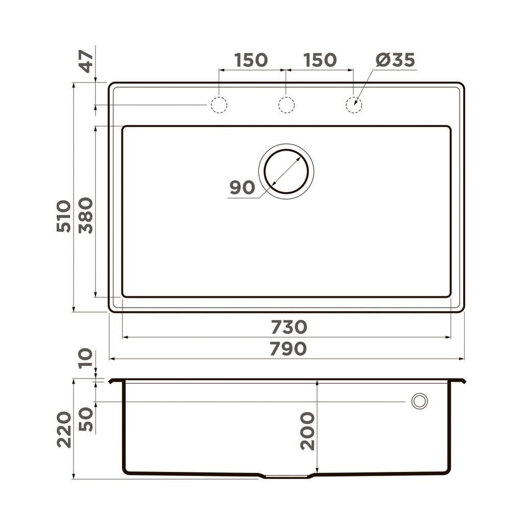Сохранить файл: Схема с размерами к Omoikiri TEDORI 79-PL.PNG, 116.94 Кб