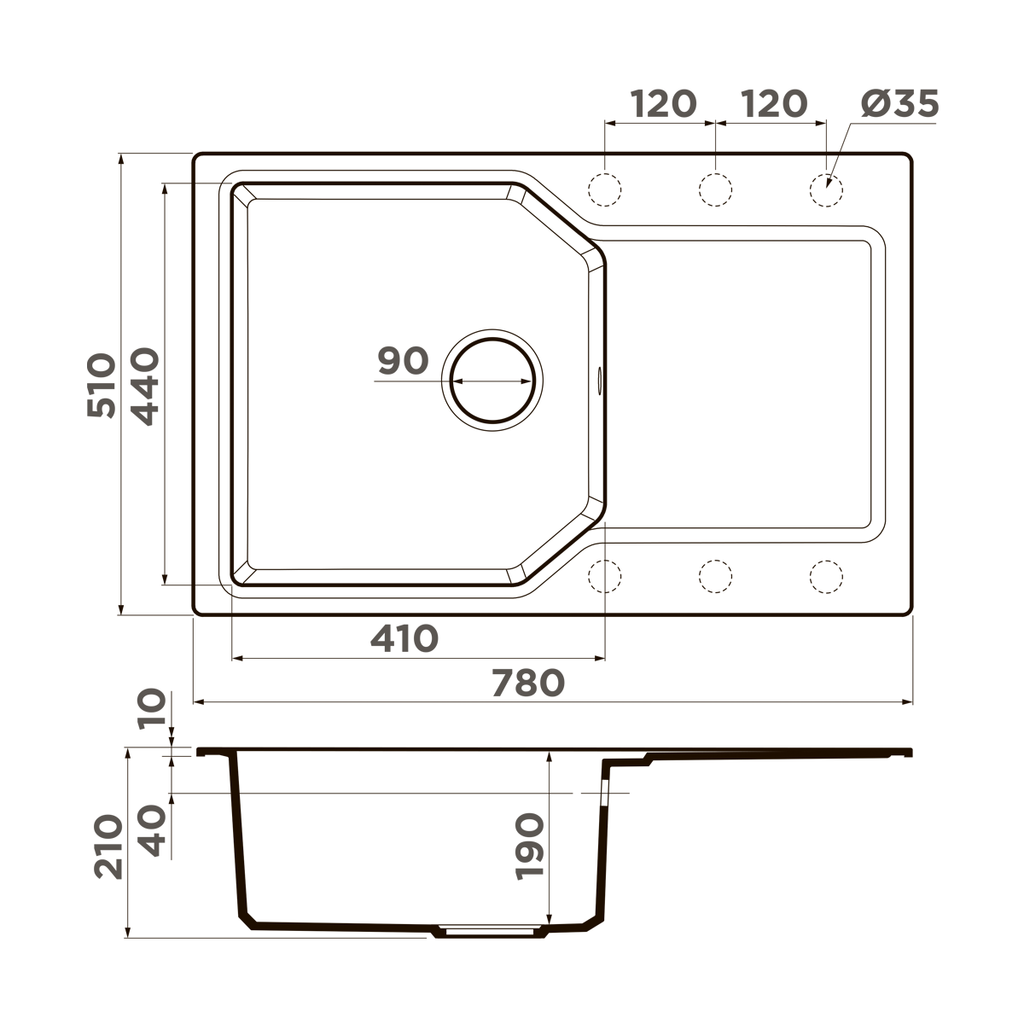 Сохранить файл: Схема с размерами к Omoikiri Yonaka-78-GR.PNG, 138.2 Кб