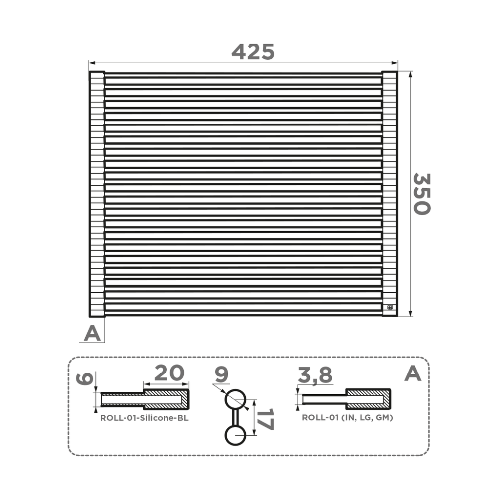 Omoikiri ROLL-01-IN - схема с размерами к аксессуару на разных языках на Hausdorf