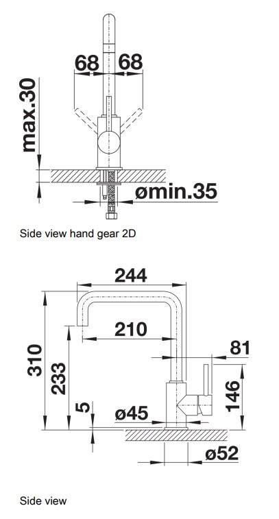 Blanco MILI 526159 - схема с размерами версия 2 к смесителю на разных языках на Hausdorf