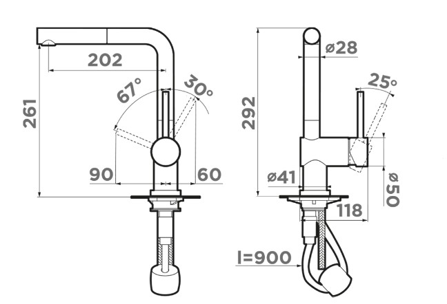 Omoikiri Akashi-S WH - схема с размерами к смесителю на разных языках на Hausdorf