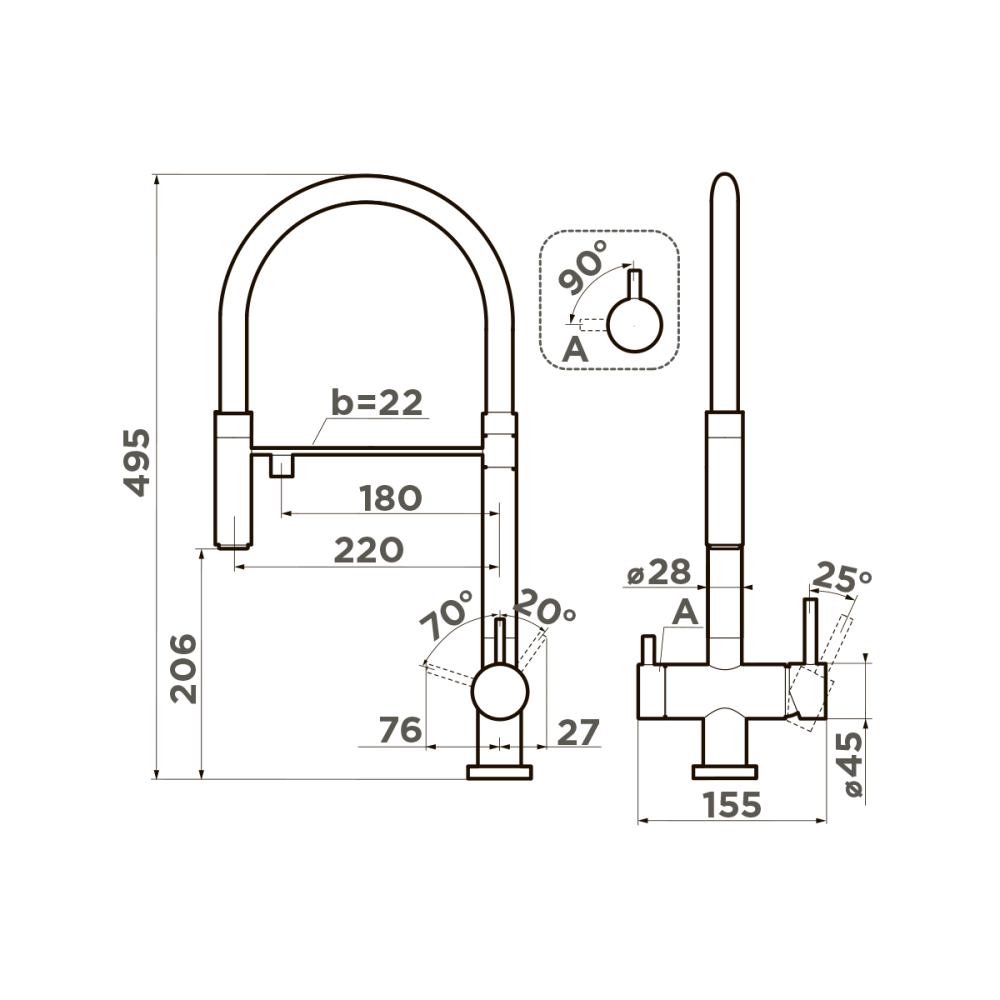 Omoikiri KANTO GM-BL - схема с размерами к смесителю на разных языках на Hausdorf