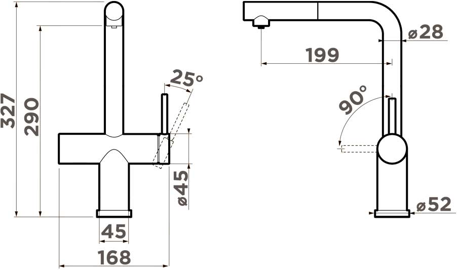 Omoikiri KARATSU-S C - схема с размерами к смесителю на разных языках на Hausdorf