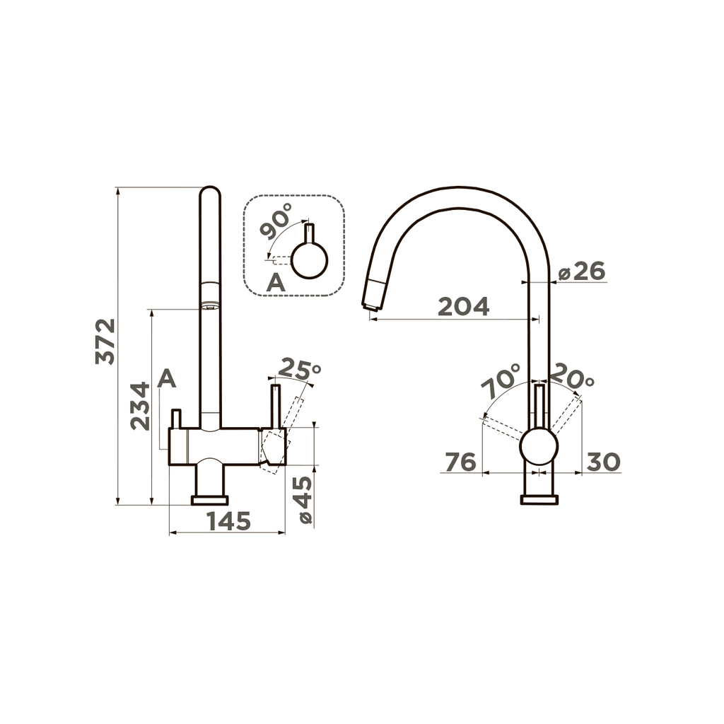 Omoikiri Yamada ES-P - схема с размерами к смесителю на разных языках на Hausdorf