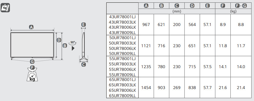 LG 55UR78009LL - схема с размерами версия 2 к телевизору на разных языках на Hausdorf