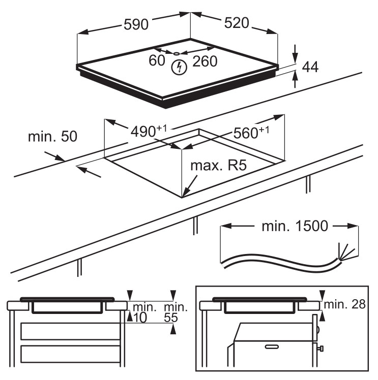 Electrolux EIV63443CT - схема встраивания к варочной панели на разных языках на Hausdorf